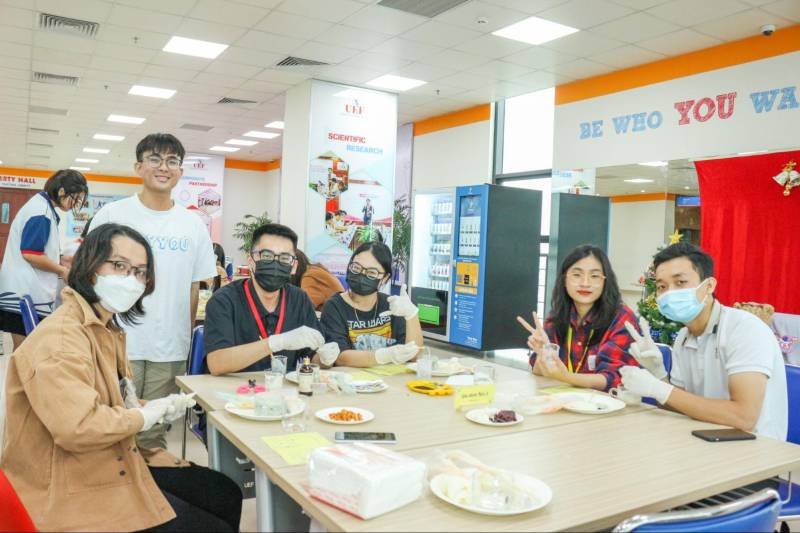Trong không khí rộn ràng Giáng sinh tại UEF, các bạn sinh viên đã có dịp hóa thân thành những “nghệ nhân” làm nến thực thụ. Từ những bước đầu đổ sáp hay đặt dây bấc đến những công đoạn cuối cùng là pha tinh dầu, trang trí cốc nến,... đều được thực hiện thủ công dưới sự hỗ trợ nhiệt tình của thành viên ban tổ chức. Tất cả tâm tư và yêu thương mà các bạn tham gia dành cho workshop có lẽ thể hiện rõ nhất qua những thành phẩm vô cùng xinh xắn và sáng tạo.