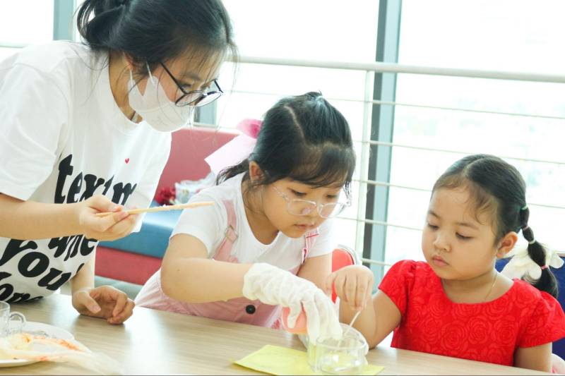 Hoạt động không chỉ thu hút sinh viên mà còn có các bạn nhỏ tham gia cùng gia đình