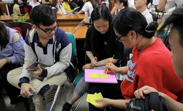 Các nhóm sinh viên cũng nhau trau đổi về các vấn đề xã hội mà các bạn quan tâm