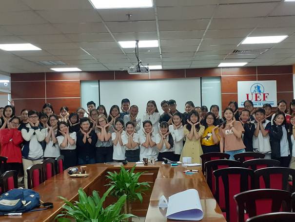 Sinh viên UEF tham dự buổi chia sẻ chụp ảnh lưu niệm cùng các chuyên gia