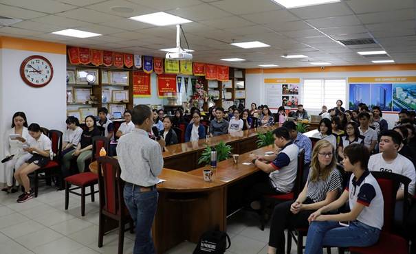 Các bạn sinh viên UEF đang lắng nghe chia sẻ từ anh Phạm Trường Sơn - Phó Giám đốc Trung tâm LIN