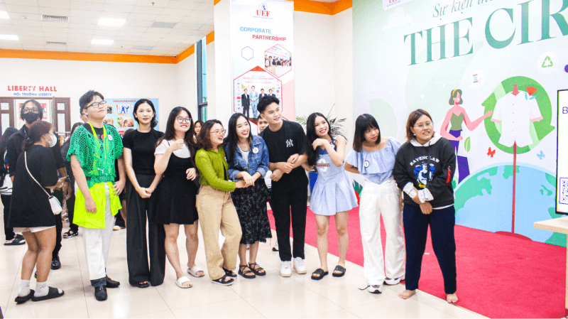 Được hưởng ứng tích cực không kém Talk show “Sống xanh, Đẹp phong cách”, sự kiện #TheCircle nhận được rất nhiều sự tham gia của các bạn sinh viên UEF. Sự kiện không chỉ đơn thuần là một địa điểm vui chơi, giải trí mà còn là nơi lan tỏa thông điệp, ý thức bảo vệ môi trường. Sự kiện bao gồm một chuỗi hoạt động với khu vui chơi, gian hàng và khu vực triển lãm sản phẩm. Từng quầy hàng sẽ tương ứng với từng hoạt động khác nhau, tất cả đều xoay quanh Thời Trang Tuần Hoàn và lối sống xanh bền vững phù hợp với môi trường. Từ gian hàng trò chơi “Vải thần kỳ” - nơi các UEF-ER cần phải trả lời chính xác các câu hỏi về ngành thời trang, đến khu vực “Thời Trang Trí Tuệ” - trò chơi cần sự suy đoán, linh hoạt đều truyền tải được thông điệp sống xanh và củng cố thêm những kiến thức về thời trang tuần hoàn cho các bạn sinh viên. Không chỉ dừng lại ở đó, #TheCircle đem đến một quầy trải nghiệm - khu vực Workshop “Se chỉ luồn kim” để các bạn có thể thử tài may vá của mình, đem về những miếng lót ly tái chế từ vải thời trang xinh xắn.