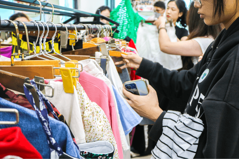 Diễn ra song song với những gian hàng trò chơi là gian hàng trao đổi quần áo quyên góp “Cũ người mới ta”, thử thách “Mix&match”, UCS và triển lãm. Tại gian hàng trao đổi “Cũ người mới ta”, các bạn sinh viên đã góp phần quyên góp những quần áo cũ, tạo nên vòng đời mới cho những sản phẩm thời trang tưởng chừng sẽ vứt đi của mình. Đến với thử thách “Mix&match”, ban tổ chức mang đến một sân chơi thử tài sáng tạo, biến hóa của các bạn sinh viên. Từng trang phục mới lạ được tạo ra từ những mảnh vải cũ trong thử thách đã làm bầu không khí sự kiện trở nên nhộn nhịp hơn bao giờ hết. Có một bạn sinh viên hài hước chia sẻ rằng “Sàn diễn #TheCircle như một sàn runway đem đến bộ sưu tập thời trang tái chế cho mùa Thu Đông này vậy đó”. Tiếp nối sự kiện với khu vực UCS và triển lãm, nơi này trưng bày những sản phẩm thời trang đặc sắc đến từ đối tác UCS - Urban Circular Space Saigon, phần nào đem đến nguồn cảm hứng thời trang tuần hoàn cho sự kiện.