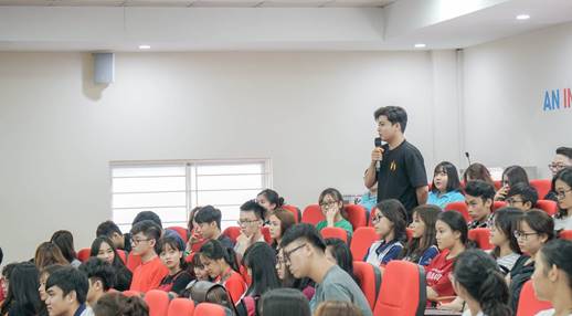 Từ những kinh nghiệm áp dụng CSR tại doanh nghiệp, anh Tiến Danh và chị Nguyệt Ánh đã giúp cho các bạn sinh viên cái nhìn thực tế về việc hoạt động CSR đang diễn ra như thế nào. Sinh viên hiểu thêm về việc các hoạt động phục vụ cộng đồng ảnh hưởng tích cực như thế nào đến hiệu quả hoạt động của các công ty, cụ thể là gia tăng lợi nhuận và uy tín của công ty. Qua câu chuyện về con đường theo đuổi những giá trị bền vững của anh chị, nhiều bạn sinh viên UEF đến từ những CLB đã đặt nhiều câu hỏi thú vị cho các diễn giả như: làm CSR thế nào cho đúng, hoặc ngành nào thì phù hợp để làm CSR? Và các bạn nhận được câu trả lời thật bất ngờ: “Ngành nào cũng có thể làm CSR được”.