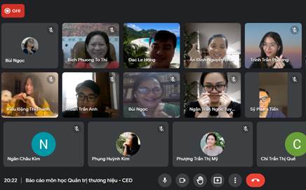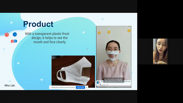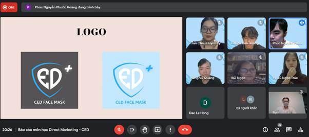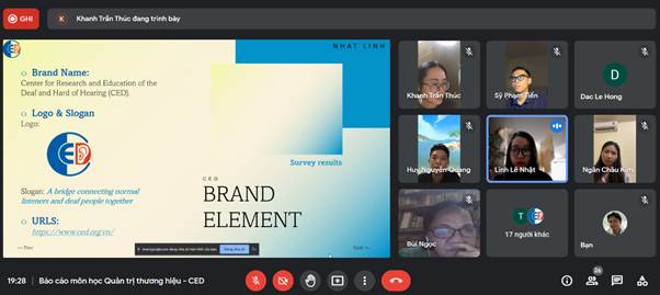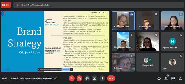 Các bạn sinh viên môn Quản trị thương hiệu trình bày phân tích và đánh giá trong thương hiệu khẩu trang trong suốt của CED