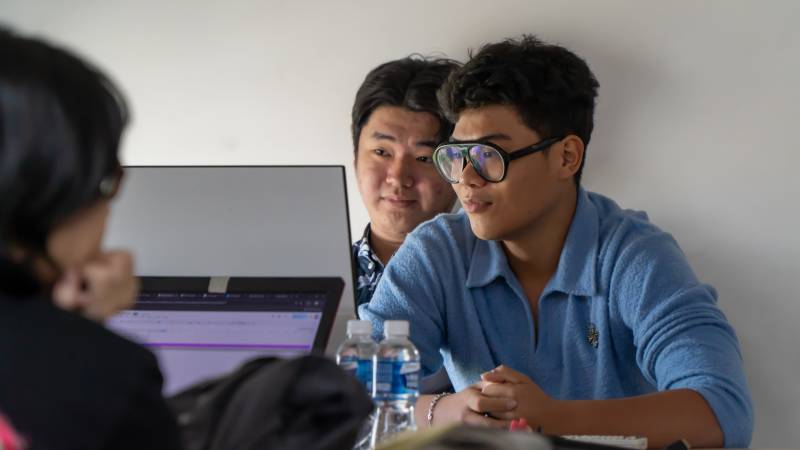 Các bạn sinh viên hào hứng trình bày sản phẩm của mình