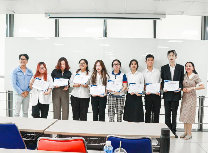 Bên cạnh niềm hân hoan khi được các thầy cô trao tận tay tấm giấy chứng nhận hoàn thành môn học, các bạn sinh viên còn không khỏi phấn khích với cơ hội giành giải thưởng 10 triệu đồng từ đối tác ForGood Vietnam trong buổi trình bày ý tưởng với ban điều hành tổ chức WeCV sắp tới. Bộ nhận diện thương hiệu được chọn sẽ xuất hiện rộng rãi trên các trang truyền thông của Tổng lãnh sự quán Mỹ và các kênh uy tín khác của WeCV.