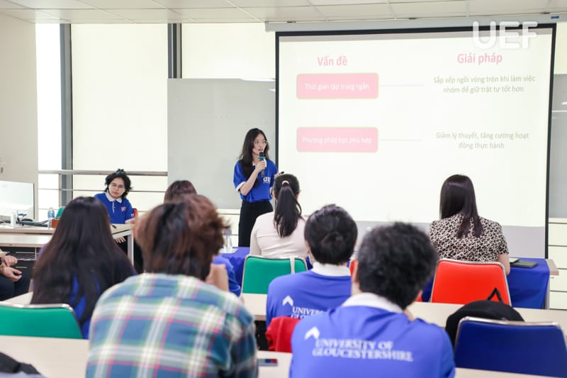 Lắng nghe quá trình thực hiện dự án của sinh viên, đại diện mái ấm, chị Anh Đào đã ghi nhận sự cố gắng của các bạn khi gắn kết và dạy học cho các em nhỏ. ThS. Trần Phương Quỳnh cũng có những chia sẻ xúc động khi nhìn thấy sinh viên trưởng thành và lan tỏa sự yêu thương qua môn học này.