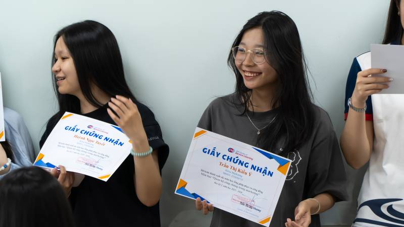 Khép lại buổi làm việc sáng, niềm vui rạng rỡ hiện trên gương mặt mỗi sinh viên khi các bạn cùng nhau nhận những tấm giấy chứng nhận hoàn thành dự án một sự ghi nhận xứng đáng cho những "hạt mầm" tử tế vừa được gieo xuống, chuẩn bị cho những bước tiến xa hơn trong tương lai.