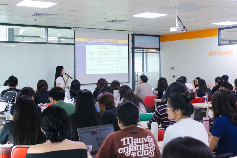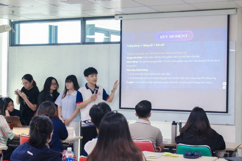 Mở màn cho buổi báo cáo là những kế hoạch truyền thông dành riêng cho sự kiện Orientation Day - hoạt động mở đầu năm học nhằm chào đón và định hướng cho các thành viên mới của TT.KNCĐ. Các nhóm sinh viên đã thể hiện sự đầu tư nghiêm túc khi đưa ra các chiến lược dựa trên số liệu khảo sát thực tế để thấu hiểu tâm lý tân sinh viên, tân thành viên. Những ý tưởng mới mẻ tập trung vào việc thay đổi cách tiếp cận, không còn phụ thuộc quá nhiều vào các kênh truyền thống như Zalo hay Facebook, mà thay vào đó là những trải nghiệm tương tác trực tiếp và cá nhân hóa. Sự tự tin trong việc bảo vệ góc nhìn mới này đã giúp các bạn nhận được nhiều đánh giá tích cực về tư duy làm nghề thực tế.