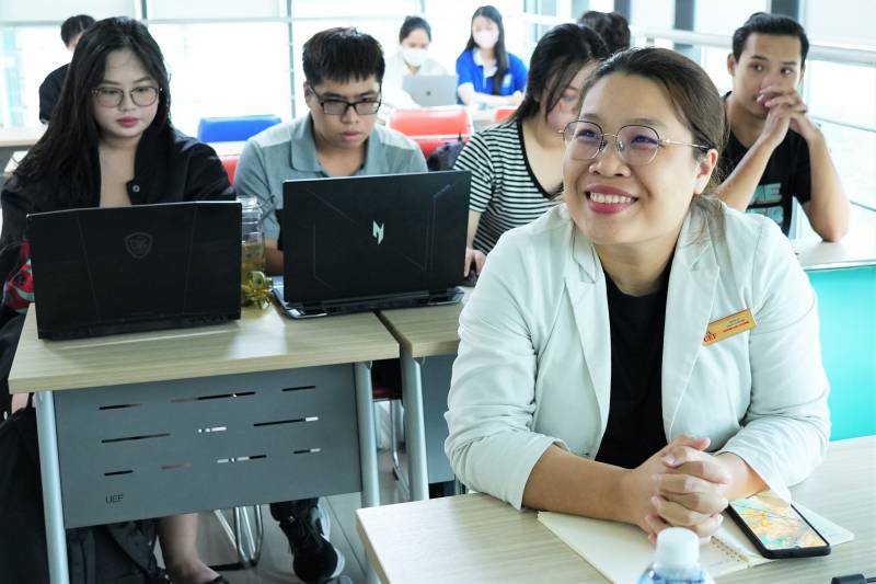 Tham dự buổi workshop có ThS. Trần Phương Quỳnh – Phó Viện trưởng Viện Quốc tế UEF, Phó Giám đốc Glouecstershitre Vietnam, ThS. Lê Nguyễn Ngọc Thanh – Giảng viên phụ trách học phần, cùng ThS. Trần Thị Mỹ Phượng – Giám đốc Trung tâm Service-Learning, UEF. Đặc biệt, khách mời từ doanh nghiệp là chị Nguyễn Võ Trúc Giang, đại diện cho doanh nghiệp 2C và Your-E.