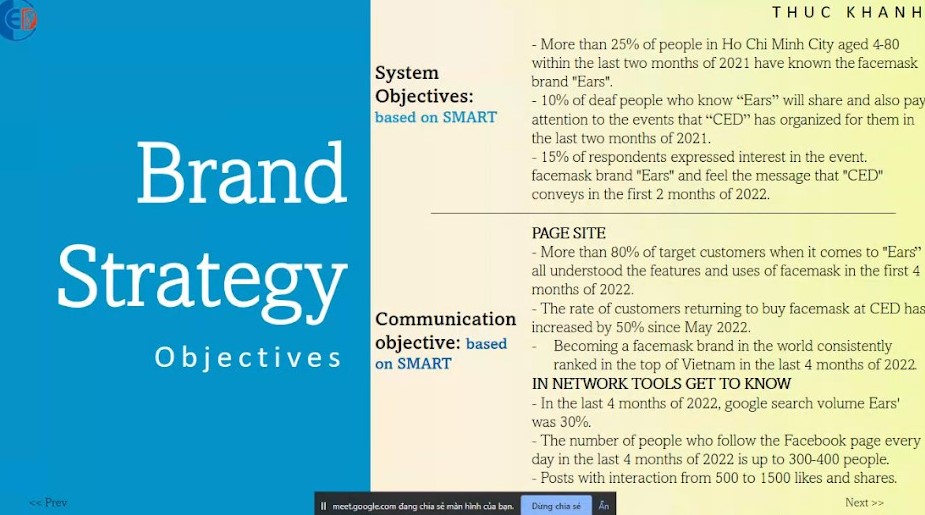 Các bạn sinh viên môn Quản trị thương hiệu trình bày phân tích và đánh giá trong thương hiệu khẩu trang trong suốt của CED