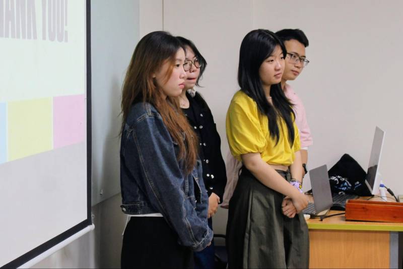 Buổi báo cáo có sự tham dự của anh Trần Quang Thọ - Điều phối Chương trình từ Trung tâm ICS, ThS. Nguyễn Thị Bích Vân - Phó trưởng Khoa Quan hệ công chúng và Truyền thông, giảng viên hướng dẫn môn học, cùng ThS. Trần Thị Mỹ Phượng - Giám đốc Trung tâm Kết nối cộng đồng UEF.