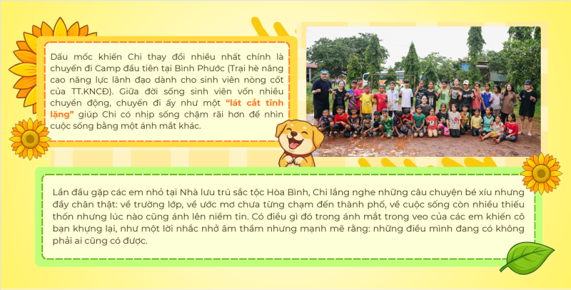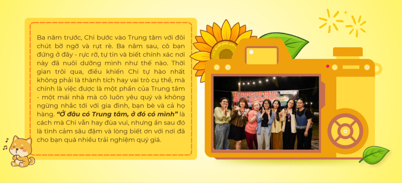 Nếu không có Trung tâm, có lẽ Chi vẫn sẽ đi tìm một nơi để học hỏi và kết nối trong những năm đại học. Nhưng cơ duyên đưa cô đến với Trung tâm đã mở ra một hành trình rất khác, một hành trình gần gũi, gắn bó và đầy ý nghĩa.