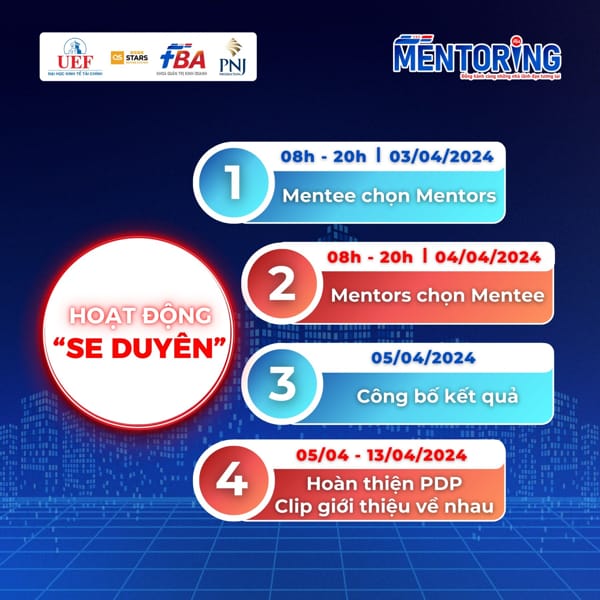Các mốc thời gian và hoạt động cụ thể mà mentors và mentees phải thực hiện tại “se duyên”