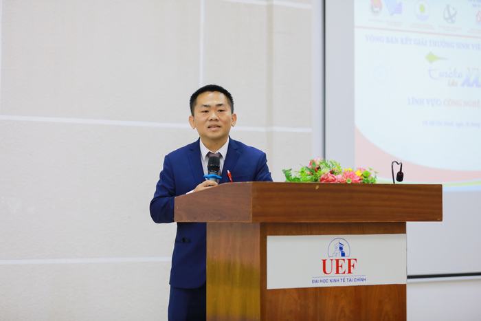 Đại diện đơn vị tổ chức vòng Bán kết, PGS.TS. Ngô Cao Cường – Phó Hiệu trưởng UEF nhấn mạnh: “UEF xem đây là một hoạt động phục vụ cộng đồng ý nghĩa, góp phần động viên, khuyến khích các bạn trẻ tích cực đưa ra những ý tưởng, giải pháp cụ thể, những phát minh mới trên nhiều lĩnh vực. Giải thưởng Euréka cũng sẽ là lợi thế lớn cho các bạn trong công việc cũng chinh phục những bậc học cao hơn sau này”. Thầy cũng gửi lời động viên và chúc mừng các thí sinh đã góp mặt trong vòng Bán kết hôm nay. Hy vọng các bạn sẽ luôn giữ vững phong độ, niềm say mê nghiên cứu, góp phần tìm ra các giải pháp khoa học sáng tạo mới và tiếp tục chinh phục Hội đồng khoa học tại vòng Chung kết sắp tới.
