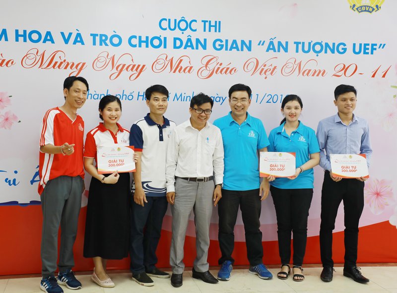 Với sự cổ vũ, tiếp lửa nhiệt tình của rất đông cổ động viên, quý thầy cô UEF đã cùng hòa mình vào chuỗi những hoạt động hướng đến ngày tri ân những “người lái đò”, từ dốc sức thi đấu các trò chơi như kéo co, nhảy bao bố đến khéo léo thể hiện khiếu thẩm mỹ của mình ở hội thi cắm hoa.