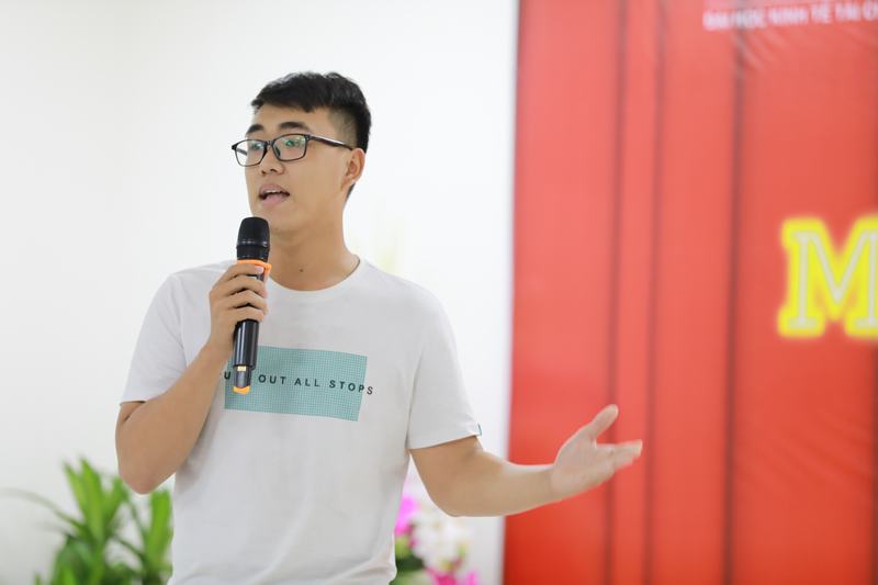 Vốn là một MC truyền hình dày dặn kinh nghiệm, TS. Nhan Cẩm Trí – Phó Hiệu trưởng Nhà trường đã “truyền lửa” cho thí sinh trước giờ tranh tài