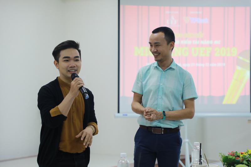 Tham dự và động viên 30 thí sinh tại vòng thi này có TS. Nhan Cẩm Trí – Phó Hiệu trưởng Nhà trường, ThS. Phan Bảo Giang – Phó Trưởng khoa Quan hệ công chúng và truyền thông.