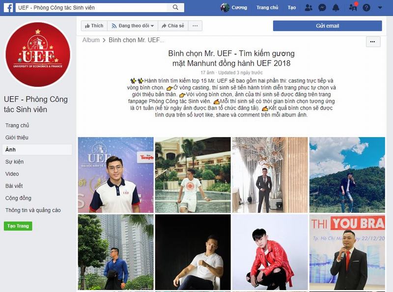 Vòng bình chọn Mr. UEF đang diễn ra sôi nổi trên trang Fanpage Phòng Công tác sinh viên UEF