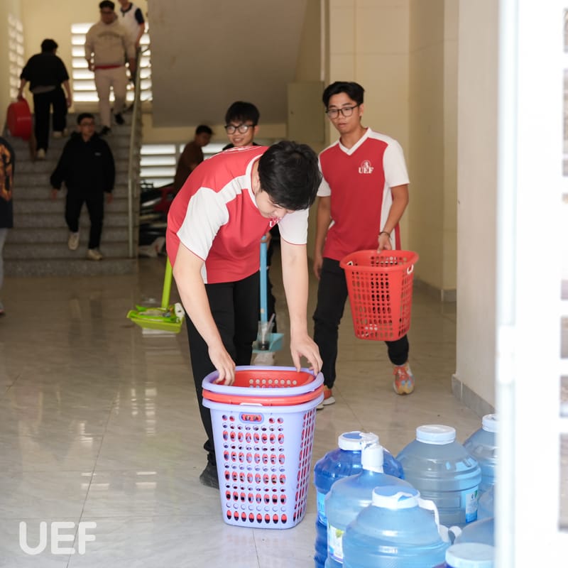 Sinh viên tiến hành vệ sinh khu vực chỗ ở và sinh hoạt