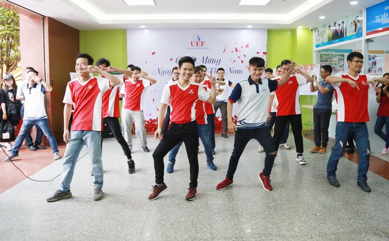 Mở ra bầu không khí sôi nổi cho "bữa tiệc" chính là tiết mục nhảy đầy ấn tượng do các nam cán bộ, giảng viên, nhân viên UEF biểu diễn. Tiết mục bất ngờ này đã thay cho những lời chúc mừng ý nghĩa dành tặng đến “phái đẹp” UEF.