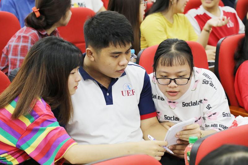Sinh viên UEF tích cực thảo luận nhóm, tham gia các minigames trong chương trình