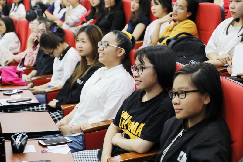 Tham gia chương trình, các bạn sinh viên được nghe diễn giả chia sẻ những “bí kíp” để cải thiện và nâng cao kỹ năng nghe. Thầy Lê Nguyên Lân nhấn mạnh: "Tùy vào khả năng của từng bạn, chúng ta có thể tự trau dồi tiếng Anh qua các app điện thoại để luyện tập hàng ngày, các kênh youtube với chủ đề dễ tìm hiểu, lập kế hoạch để tạo thói quen luyện nghe tiếng Anh mỗi ngày,...".