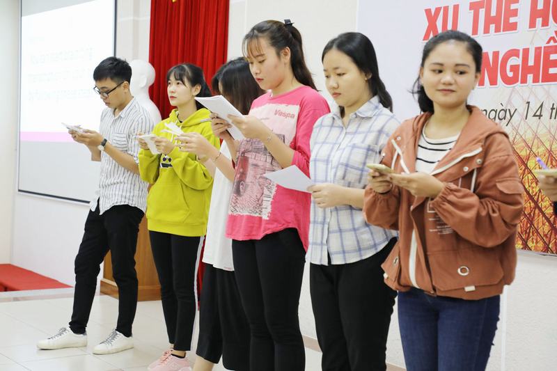 Cạnh đó, diễn giả cũng chỉ ra những cản trở trong quá trình học tiếng Anh của các bạn sinh viên như: dễ chán nản, thiếu động lực hay không có nhiều thời gian để rèn luyện,… Hiểu được những lý do đó, các thầy, cô đã chia sẻ thêm với các bạn sinh viên những phương pháp vừa bổ ích, vừa dễ thực hiện.