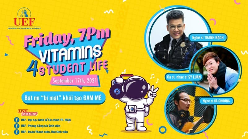 Tiếp nối chuỗi chương trình sinh hoạt chuyên đề đầu khóa “Friday 7PM - Vitamins For Student Life", tối qua 17/9, số phát sóng thứ 2 được tổ chức với chủ đề “Bật mí bí mật khởi tạo đam mê" với 3 nghệ sĩ khách mời là Thanh Bạch, Hà Chương và Sỹ Luân.