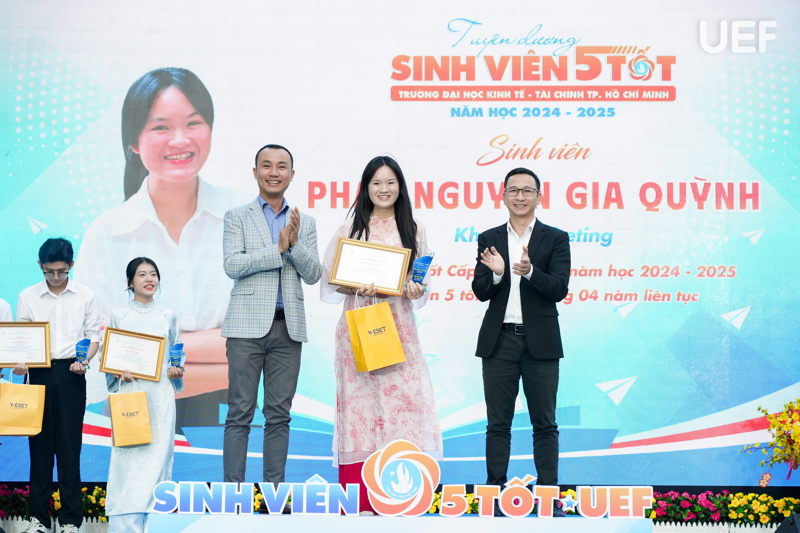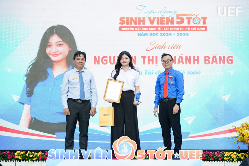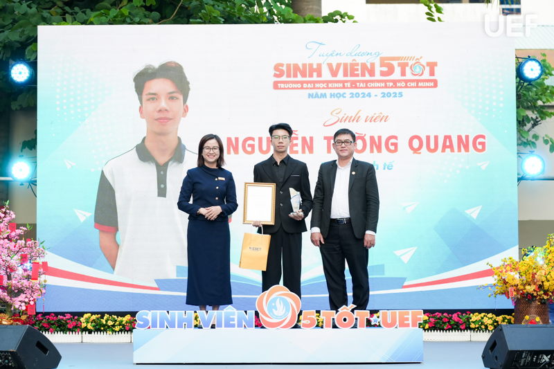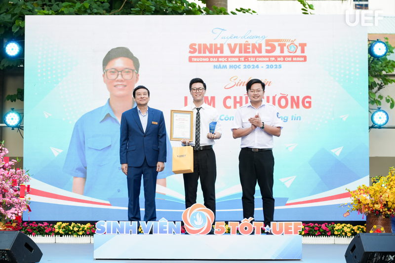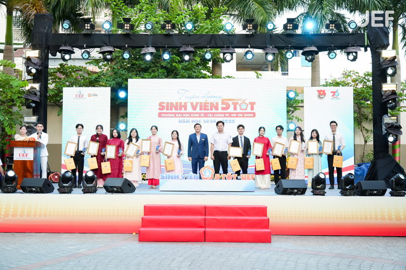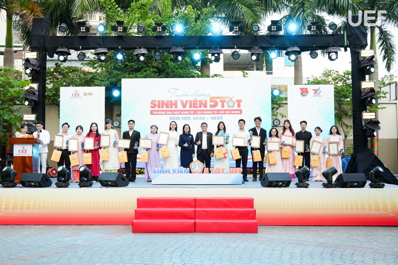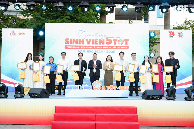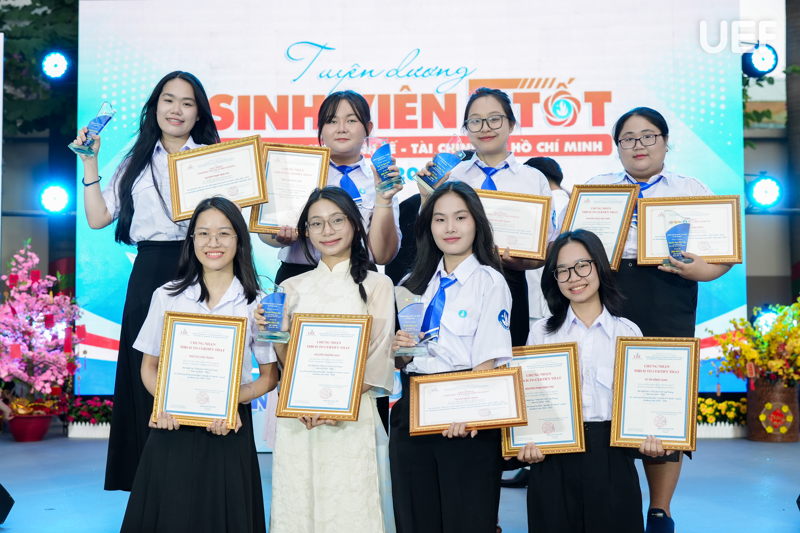Dịp này, UEF đã tuyên dương 127 sinh viên đạt danh hiệu Sinh viên 5 tốt cấp khoa, 61 sinh viên cấp trường và 6 sinh viên cấp thành phố, ghi nhận những nỗ lực bền bỉ của sinh viên trong học tập và rèn luyện.