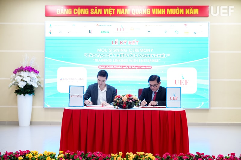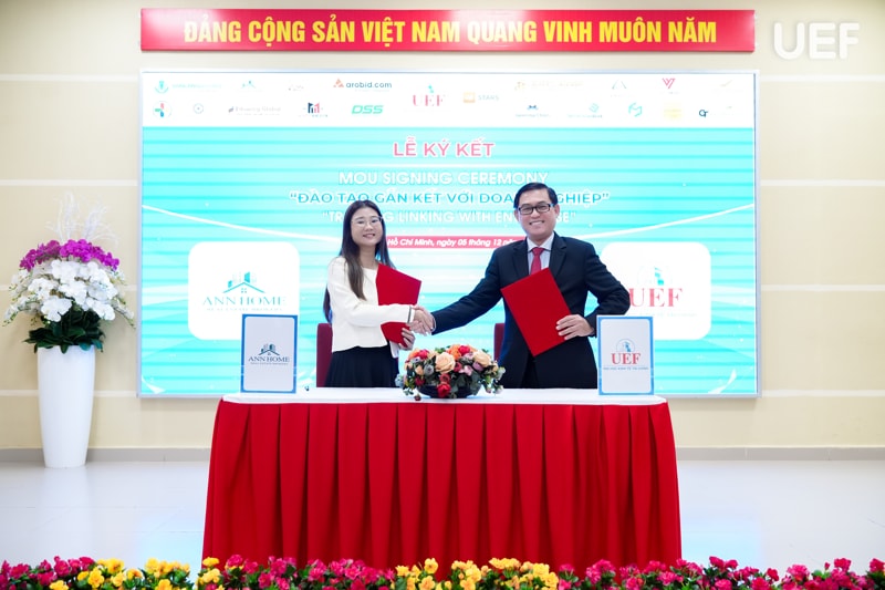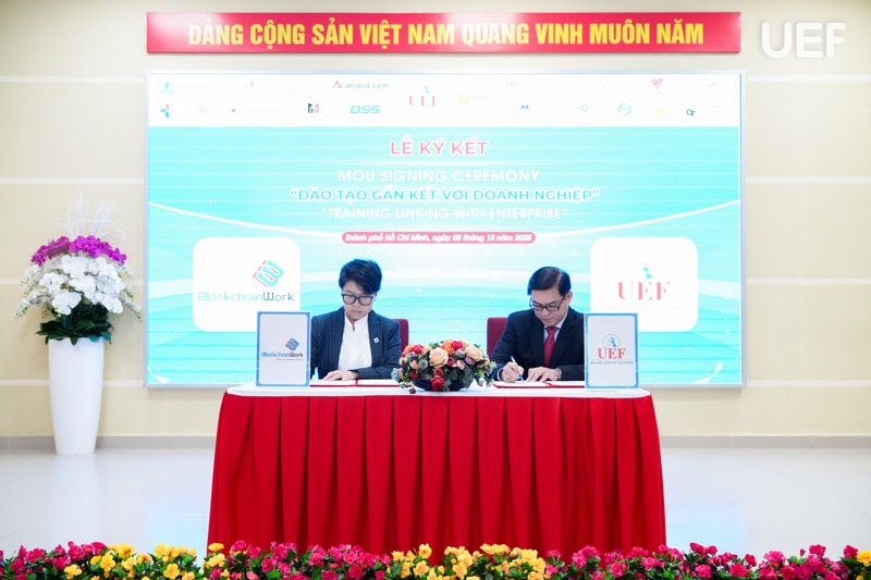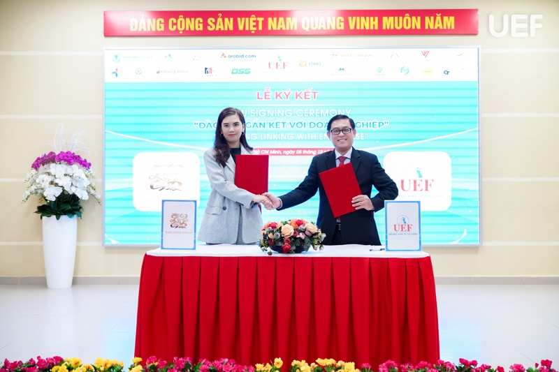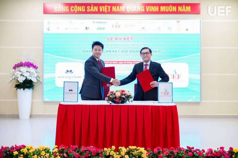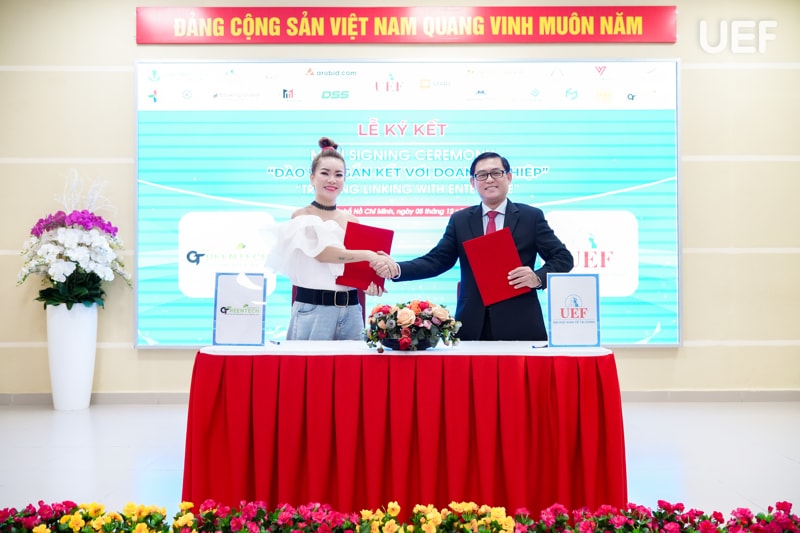 Tại đây, UEF đã ký kết hợp tác MOU cùng 18 doanh nghiệp, gồm: (1) Công ty CP Công nghệ Arobid; (2) Công Ty TNHH Sản Xuất Thương Mại AKUBA; (3) Công ty CP Văn hóa Văn Lang; (4) Công Ty TNHH Minh Tuấn Mobile; (5) Công ty TNHH SX TM DV Nam Ân (với thương hiệu From Cầu Đất Coffee); (6) Công ty CP BlockchainWork; (7) Công Ty TNHH TM&DV Bất Động Sản Unite Group; (8) Công Ty TNHH Quảng Cáo Và Công Nghệ Truyền Thông Quốc tế Learning Chain; (9) Công ty Cổ phần Công Nghệ DSS Miền Nam ; (10) Công ty TNHH Truyền thông VNET Media; (11) Nha khoa Cẩm Tú; (12) Công ty CP Giáo dục và Đầu tư Con đường thành công Eduwing Global; (13) Công ty Cổ phần Nhà Ann Home; (14) Công ty TNHH xuất nhập khẩu HLS Thuận Hải; (15) Giao Long Group; (16) GreenTech; (17) Công ty CP Opensens; (18) Công ty CP Dịch vụ tư vấn RAPBANK Việt Nam.