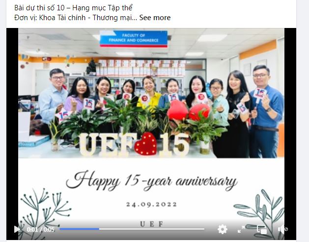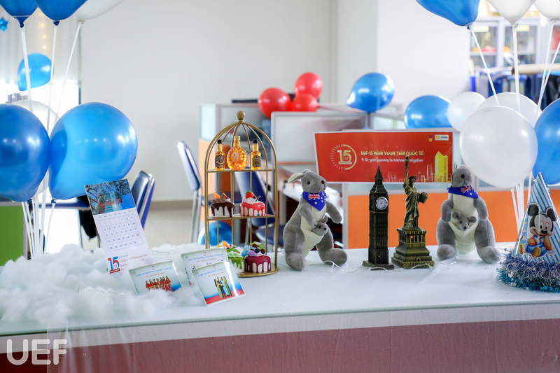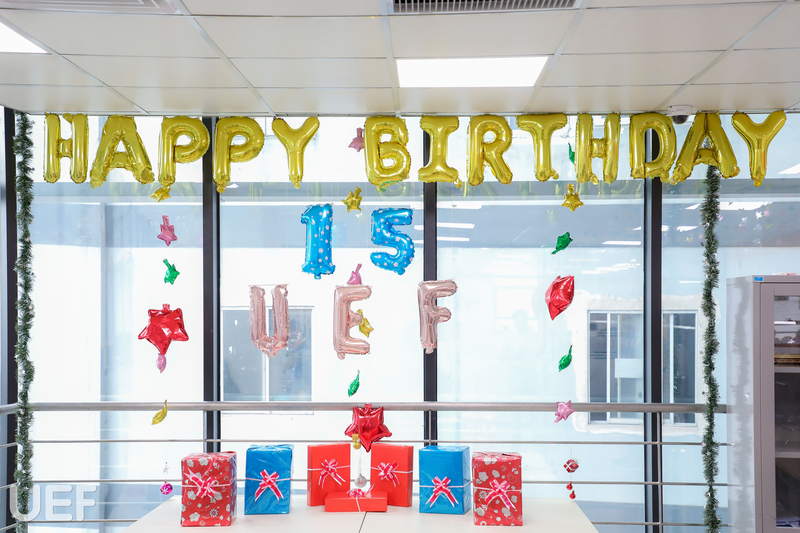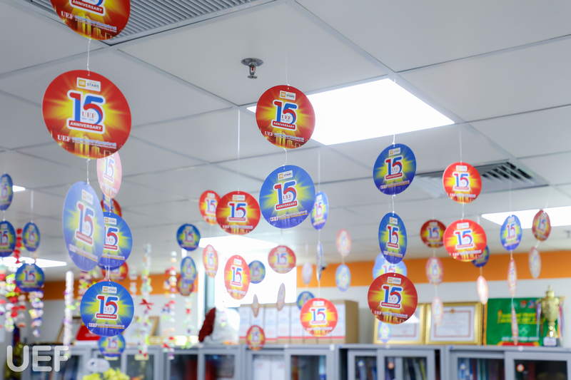 Bên cạnh các hoạt động sôi nổi của sinh viên, trong không khí tưng bừng đón mừng tuổi 15, các đơn vị, phòng ban Nhà trường đã tích cực hưởng ứng 2 cuộc thi “Trang trí văn phòng làm việc” và “Quà tặng tuổi 15” do Công đoàn tổ chức như món quà gửi đến “người bạn lớn” UEF.