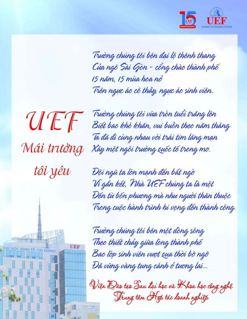 Bên cạnh việc trang trí văn phòng làm việc, các thầy cô cán bộ, giảng viên, nhân viên Nhà trường còn hào hứng hưởng ứng cuộc thi “Quà tặng tuổi 15” với nhiều món quà tinh thần giá trị. Quà tặng chính là các sản phẩm video, thơ, tranh vẽ, bài viết,… gắn với Nhà UEF.