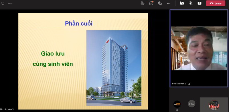 Song song với việc chia sẻ, báo cáo viên cũng đặt ra những câu hỏi tương tác để nắm bắt khả năng nhìn nhận vấn đề của sinh viên cùng với đó là những ví dụ cụ thể từ chính doanh nghiệp để các bạn dễ hình dung.