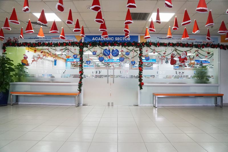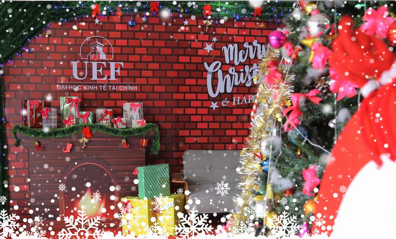 Một mùa Noel nữa lại đến. Tiếng nhạc và không khí hân hoan đón Giáng Sinh đang rộn ràng khắp nơi. Ngay tại trường Trường Đại học Kinh tế - Tài chính thành phố Hồ Chí Minh (UEF), sắc đỏ ấm áp, may mắn và an lành đã ngập tràn không gian.
