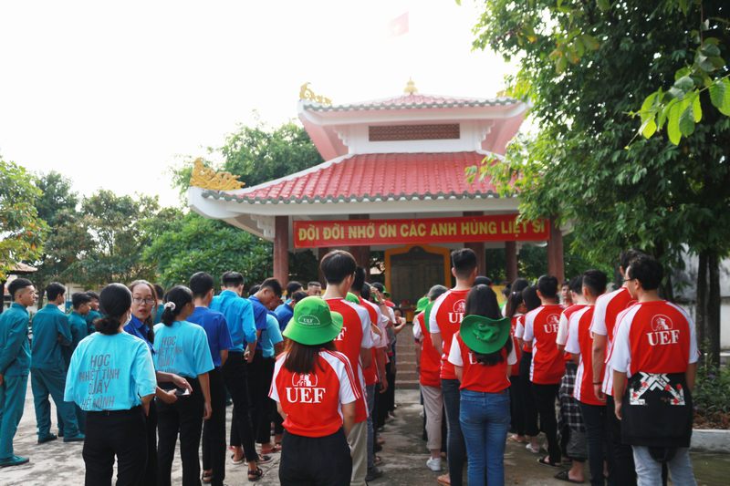 Tiếp tục phát huy truyền thống uống nước nhớ nguồn, chiến sĩ UEF đã đến thắp nhang tưởng niệm tại đền tưởng niệm xã Mỏ Công. Cạnh đó, các chiến sĩ cùng các thầy cô trong Ban Lãnh đạo Nhà trường UEF đã đến thăm và tặng quà cho các gia đình chính sách tại địa phương. Trong chiến dịch lần này, UEF cũng đã hoàn tất và trao tặng 01 căn nhà nhân ái cho người dân có hoàn cảnh khó khăn tại địa phương.