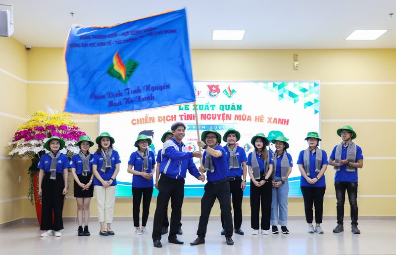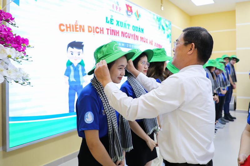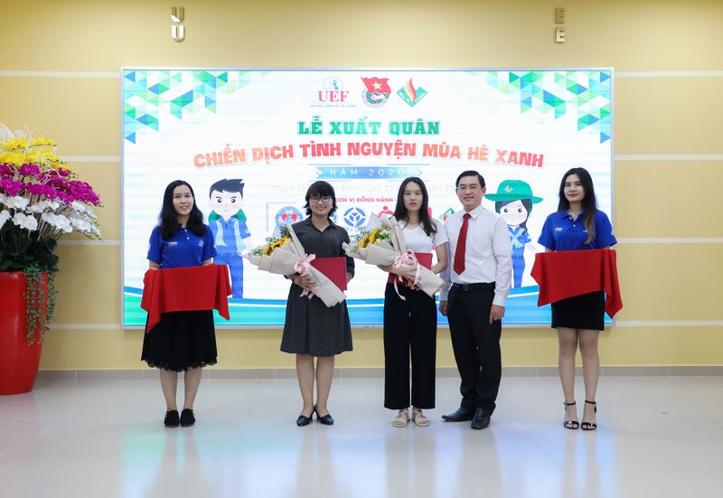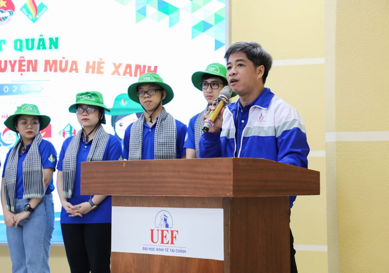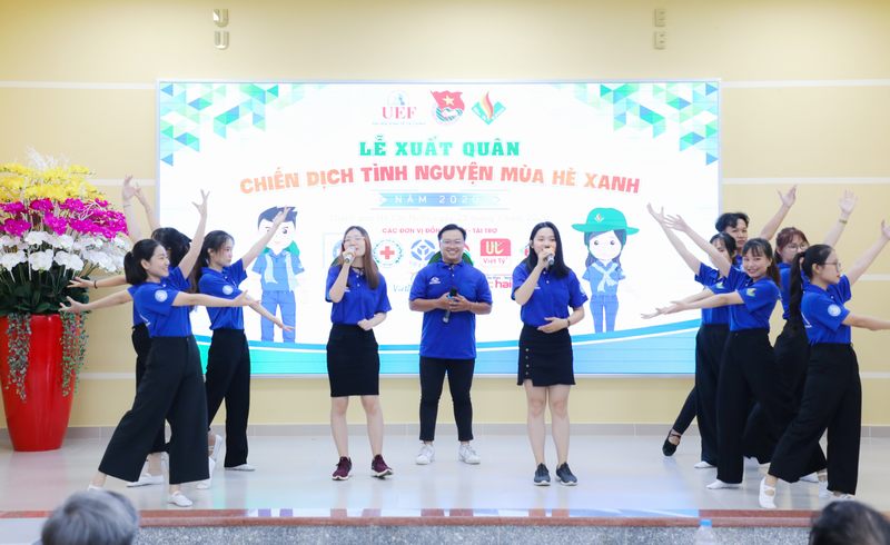 Mở đầu buổi lễ, các chiến sĩ UEF đã khơi dậy tinh thần tình nguyện tuổi trẻ qua những tiết mục văn nghệ sục sôi khí thế. Tiếp đó, với vai trò Chỉ huy trưởng chiến dịch, đồng chí Nguyễn Huỳnh Sinh – Bí thư Đoàn trường đã thông qua báo cáo công tác chuẩn bị và những hoạt động cụ thể trong chiến dịch Mùa hè xanh 2020. Trong đó, Ban chỉ huy đã triển khai công tác tuyên truyền, vận đông và nhận được hơn 300 triệu đồng thông qua các hoạt động: Share with heart, Nuôi heo đất – Một tấm lòng nhỏ, một tình yêu lớn; ống heo sách – mỗi quyển sách, mỗi tấm lòng, kêu gọi tài trợ từ các doanh nghiệp,…