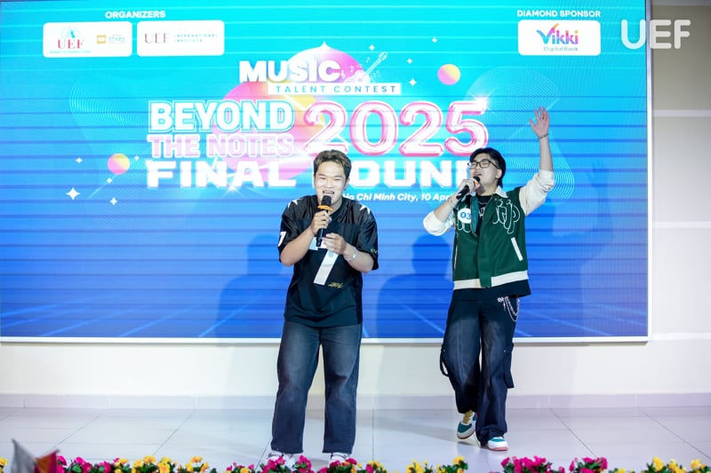 Tối ngày 10/4, sân khấu Nhà UEF bùng nổ cảm xúc với đêm Chung kết cuộc thi "Beyond the Notes 2025 - Tài năng âm nhạc" do Viện Quốc tế UEF tổ chức. Sự kiện đã mang đến không gian nghệ thuật đầy màu sắc, nơi UEFers thể hiện trọn vẹn tài năng, cá tính và niềm đam mê qua 10 tiết mục đặc sắc gồm hát và kịch. Từ những giai điệu sâu lắng đến các tiểu phẩm hài hước, cảm động, đêm thi là sự tổng hòa của cảm xúc, sáng tạo và bản lĩnh sân khấu.