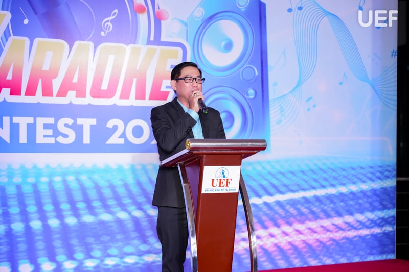 Trước khi các tiết mục bước vào tranh tài, TS. Nhan Cẩm Trí đã gửi lời chúc mừng và động viên tinh thần đến các thí sinh. Thầy chia sẻ rằng, từ hơn 100 tiết mục đăng ký ở vòng sơ khảo, Karaoke Contest 2025 đã thu hút sự góp mặt của các bạn sinh viên từ nhiều trường đại học khác. Từ một sân chơi dành cho UEFers, cuộc thi dần trở thành điểm hẹn của những giọng ca triển vọng, nơi các bạn trẻ thể hiện đam mê, kỹ thuật và cả cá tính âm nhạc qua từng tiết mục biểu diễn.