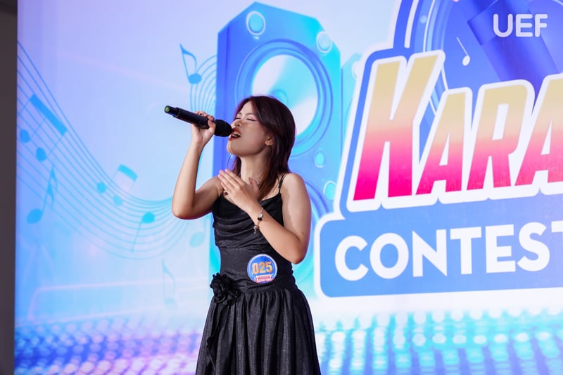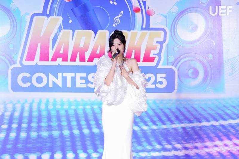 Ấn tượng, sâu lắng, hào hùng - những cảm xúc ấy đã hòa quyện trong không gian đầy màu sắc của vòng Chung kết Karaoke contest 2025 diễn ra tại Nhà UEF. Với phần dự thi của 13 thí sinh xuất sắc, mỗi bạn mang đến một sắc màu âm nhạc riêng biệt qua bốn thể loại: nhạc trẻ, nhạc truyền thống - cách mạng, nhạc dân ca - trữ tình và nhạc tiếng nước ngoài. Những màn trình diễn đầy tâm huyết, từ giai điệu nhẹ nhàng đến khúc ca hào hùng, tất cả đã tạo nên một đêm thi giàu cảm xúc.