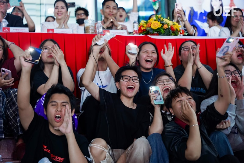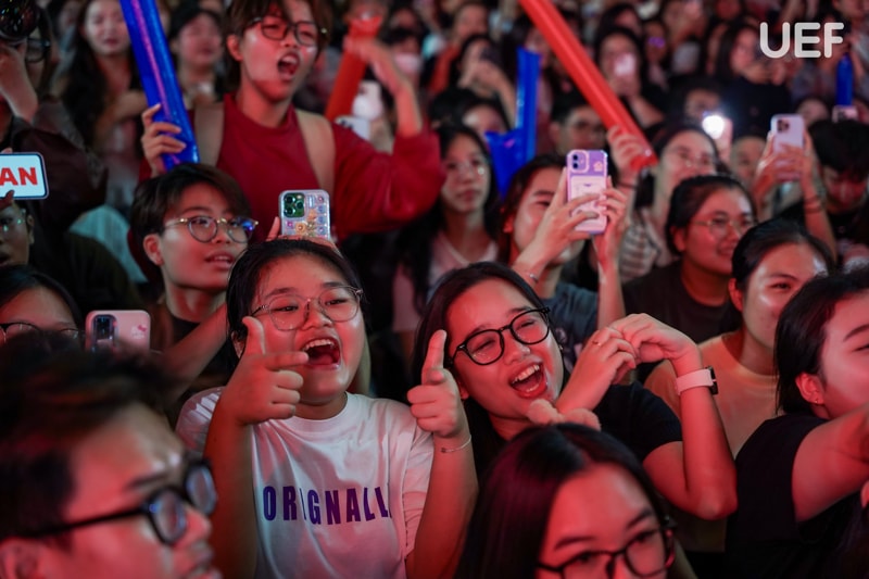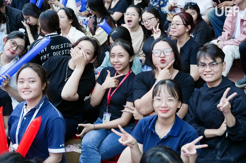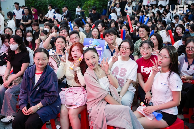 Không “lép vế” với các tiết mục trên sân khấu, sự cổ vũ cuồng nhiệt của đông đảo sinh viên UEF dưới khán đài đã trở thành “chất xúc tác” đặc biệt, tiếp thêm năng lượng cho từng tiết mục. Những tràng pháo tay không ngớt, những tiếng hò reo đầy cảm xúc và ánh đèn flash từ khán đài đã biến sân trường thành một không gian kết nối mạnh mẽ. Tại Nhà UEF, mỗi tài năng đều được công nhận và tiếp sức, mỗi khoảnh khắc tỏa sáng đều được sẻ chia trọn vẹn.