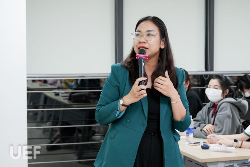 Đồng hành và mang đến nhiều kiến thức bổ ích cho các bạn sinh viên trong buổi chuyên đề đầu tiên là bà Nhâm Thị Lương - CEO Công ty Cổ phần Xuất nhập khẩu và Dịch vụ vận tải Nam Phương; Trưởng ban Hải quan và thuận lợi thương mại hóa Hiệp hội Logistics Hải Phòng (HPLA). Với vai trò là huấn luyện viên tại ONEX Training cùng hơn 20 năm kinh nghiệm hoạt động trong lĩnh vực Logistics, diễn giả đã mang đến cho UEFers nhiều bài học bổ ích và thực tiễn.
