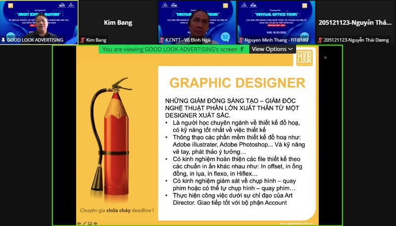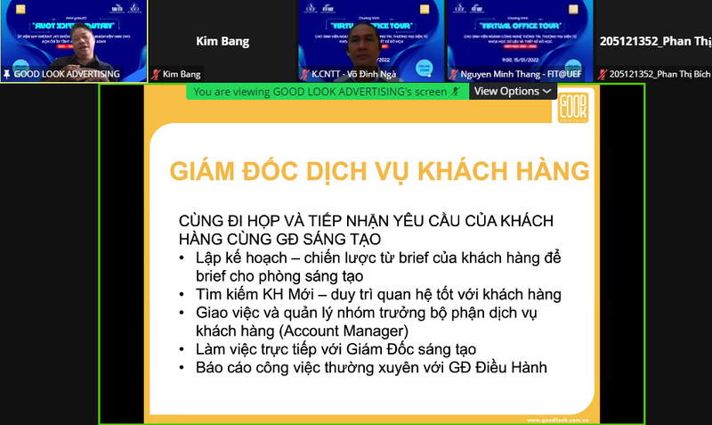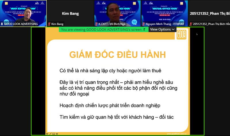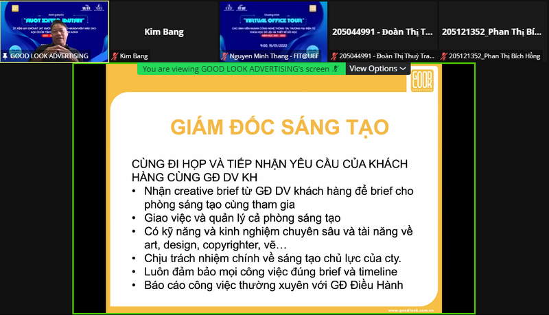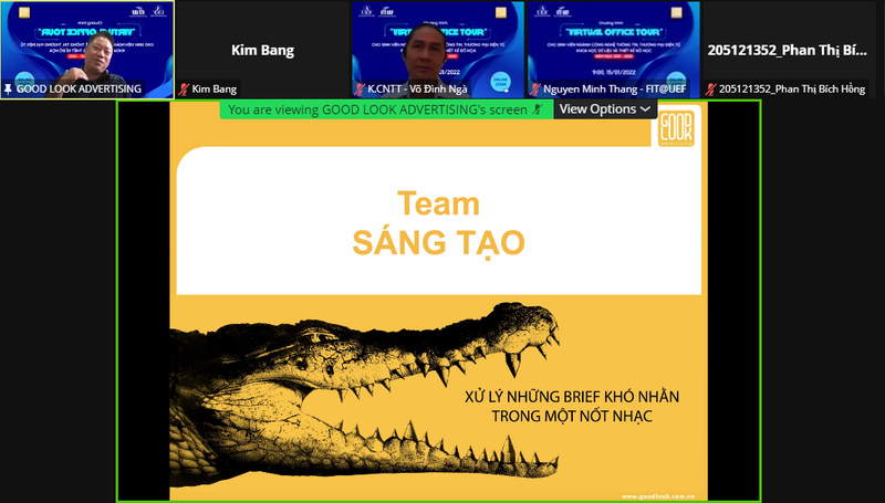 Nằm trong chuỗi hoạt động "Virtual Office Tour” của khoa Công nghệ thông tin, sáng ngày 15/1, các bạn sinh viên đã có cơ hội tham quan và trải nghiệm thực tế ảo tại công ty TNHH Truyền thông Quảng cáo Good Look.