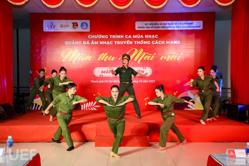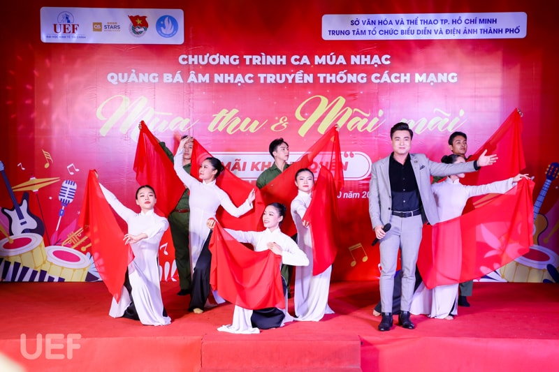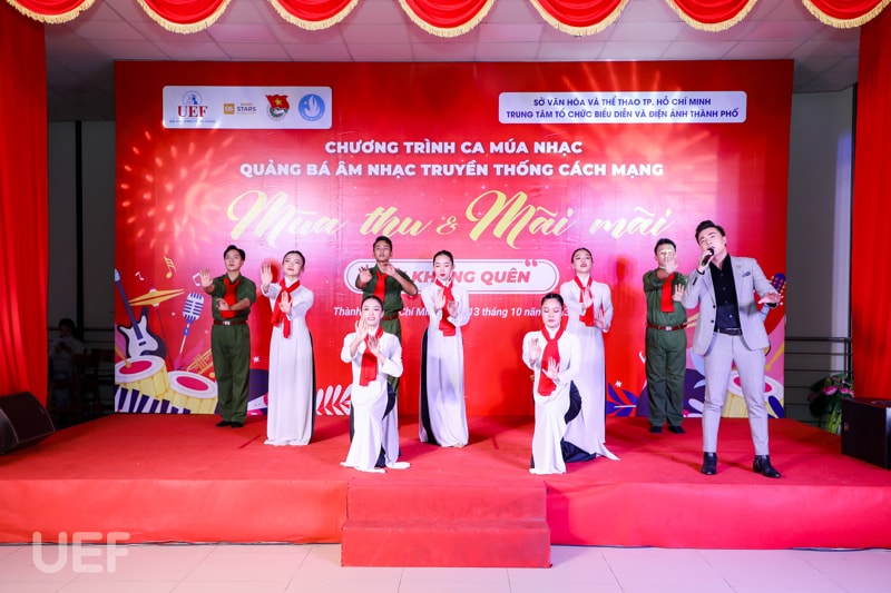Những câu chuyện về Tổ quốc, quê hương và con người đất Việt đã được tái hiện trọn vẹn cảm xúc trong không gian âm nhạc hào hùng bởi những "người kể chuyện" có chất giọng ngọt ngào, sâu lắng. Đó là dấu ấn “Mãi không quên” trong chương trình ca múa nhạc quảng bá âm nhạc truyền thống cách mạng “Mùa thu và mãi mãi”, diễn ra tại UEF vào tối 13/10. Hoạt động do Sở Văn hóa và Thể thao TP.HCM tổ chức, được phối hợp thực hiện bởi Trung tâm Tổ chức Biểu diễn và Điện ảnh Thành phố cùng UEF.