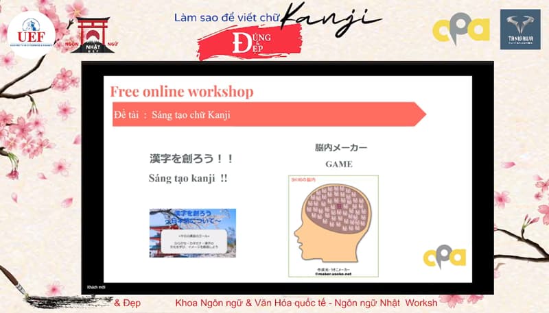 Sau thành công của chương trình “Hiểu tính cách và suy nghĩ của người Nhật để giao tiếp và làm việc hiệu quả", khoa Ngôn ngữ và Văn hóa quốc tế tiếp tục phối hợp với công ty Tanigawa và công ty CPA tổ chức workshop “Làm sao để viết chữ Kanji đúng và đẹp” vào chiều ngày 13/10. Chương trình đã giúp các bạn sinh viên hiểu hơn về bộ chữ Kanji và luyện tập khả năng sáng tạo cùng bộ chữ này khi học tiếng Nhật.