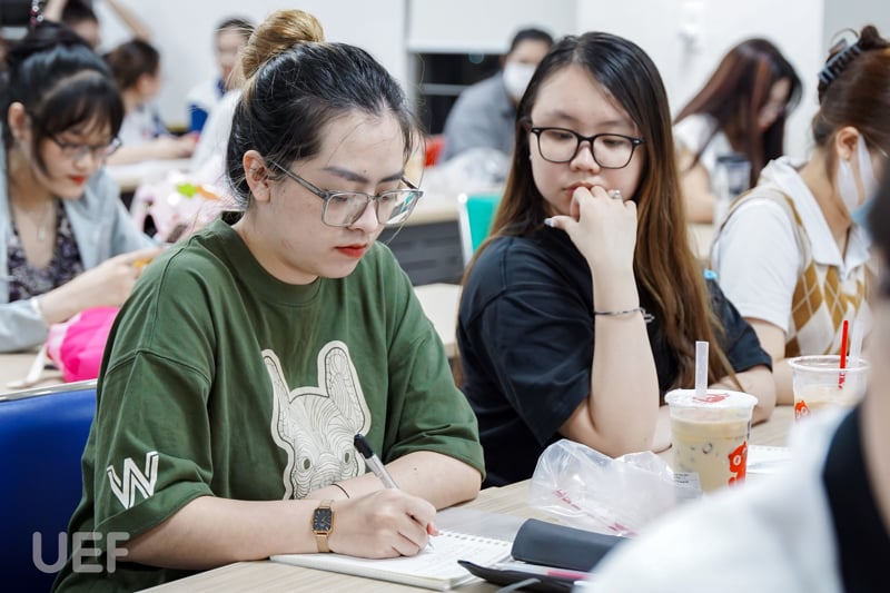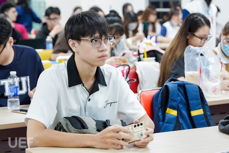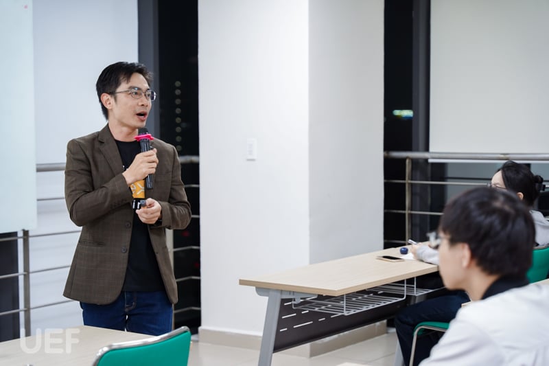 Tiếp nối buổi học, sinh viên UEF tiếp tục mở rộng kiến thức qua sự chia sẻ của diễn giả Võ Thanh Tú. Diễn giả là chuyên gia lâu năm trong nghề với vai trò tư vấn các hợp đồng hải quan, xuất nhập khẩu. Đây cũng là chủ đề được sinh viên quan tâm khi thị trường này ngày càng có nhiều biến động liên tục. Tại đây, diễn giả nhấn mạnh vào tầm quan trọng trong công việc làm thủ tục xuất nhập khẩu cho hàng hóa khi giao thương với nước ngoài.