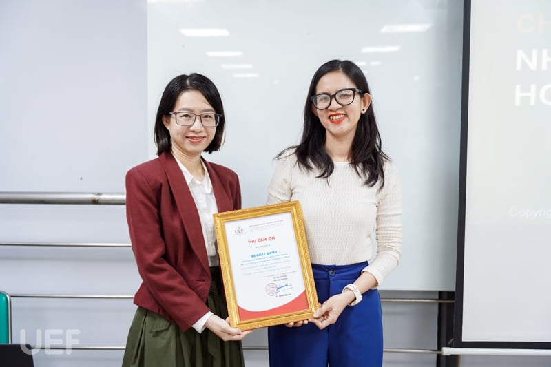 Chia sẻ với các bạn tại buổi tập huấn này là bà Đỗ Lê Quyên - RM, Trade Finance and Supply Chain Department VPBank và ông Võ Thanh Tú - Founder & CEO Công ty ONEX Logistics, Viện đào tạo Logistics ONEX. Tại đây, hai chuyên gia giàu kinh nghiệm đã mang đến cho sinh viên UEF cái nhìn bao quát về thanh toán quốc tế, rủi ro về thanh toán quốc tế và sự cần thiết của logistics.