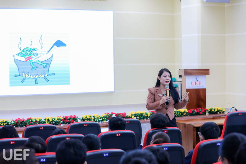 Nhằm giúp “tân binh” nhanh chóng hòa nhập và thích nghi với môi trường đại học, sáng ngày 21/9, trong khuôn khổ tuần lễ sinh hoạt đầu khóa, UEF tổ chức chuyên đề mang tên “Thích ứng với môi trường đại học” với sự đồng hành, chia sẻ của chuyên gia tâm lý - ThS. Chế Dạ Thảo.