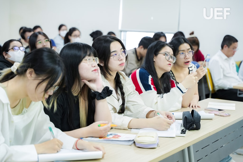 Sinh viên chăm chú lắng nghe và tương tác tích cực tạo không gian học tập thoải mái, chất lượng